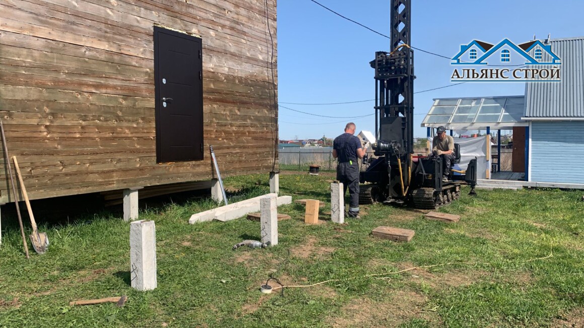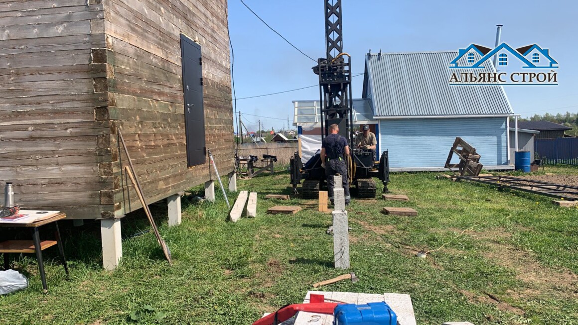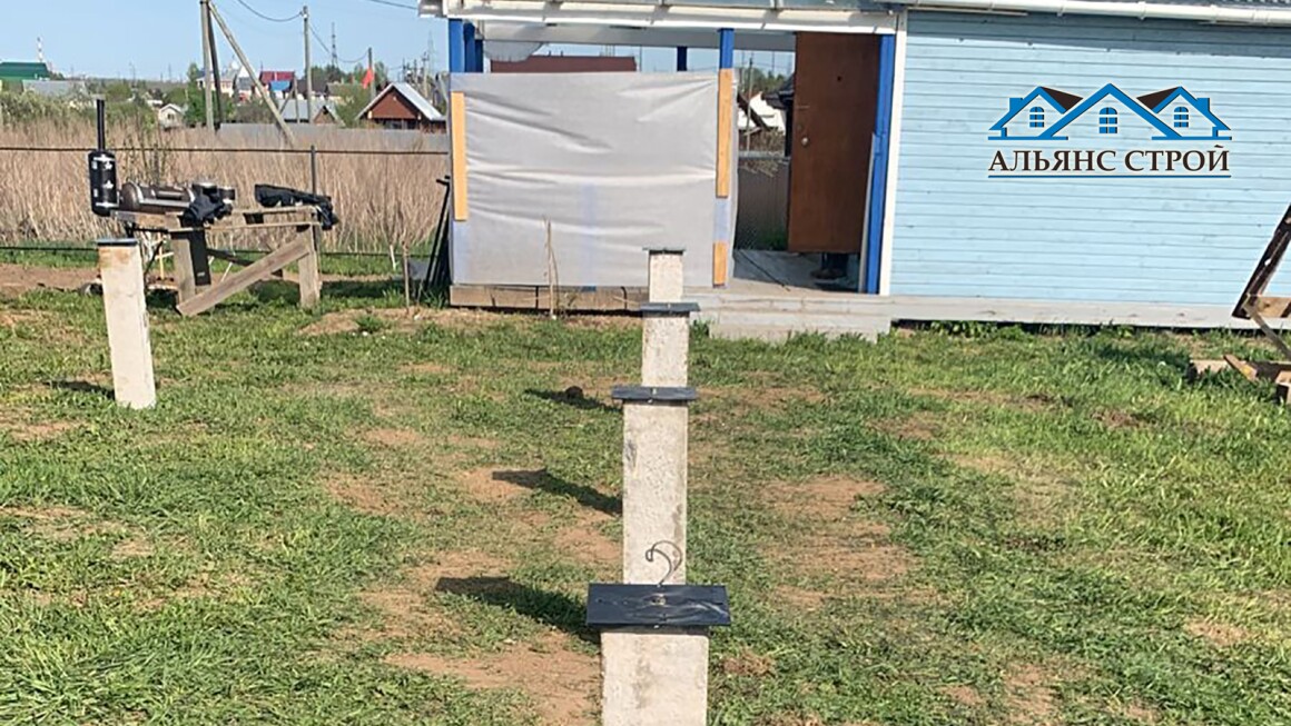 Изготовили фундамент из ж/б забивных свай под строение к дому. Свая 150х150х3000 мм. Оголовок 200х200 мм.