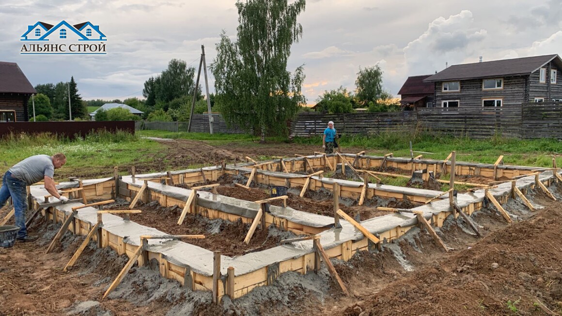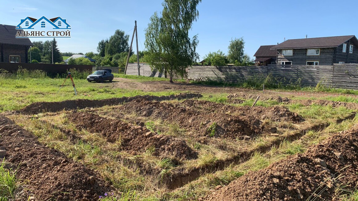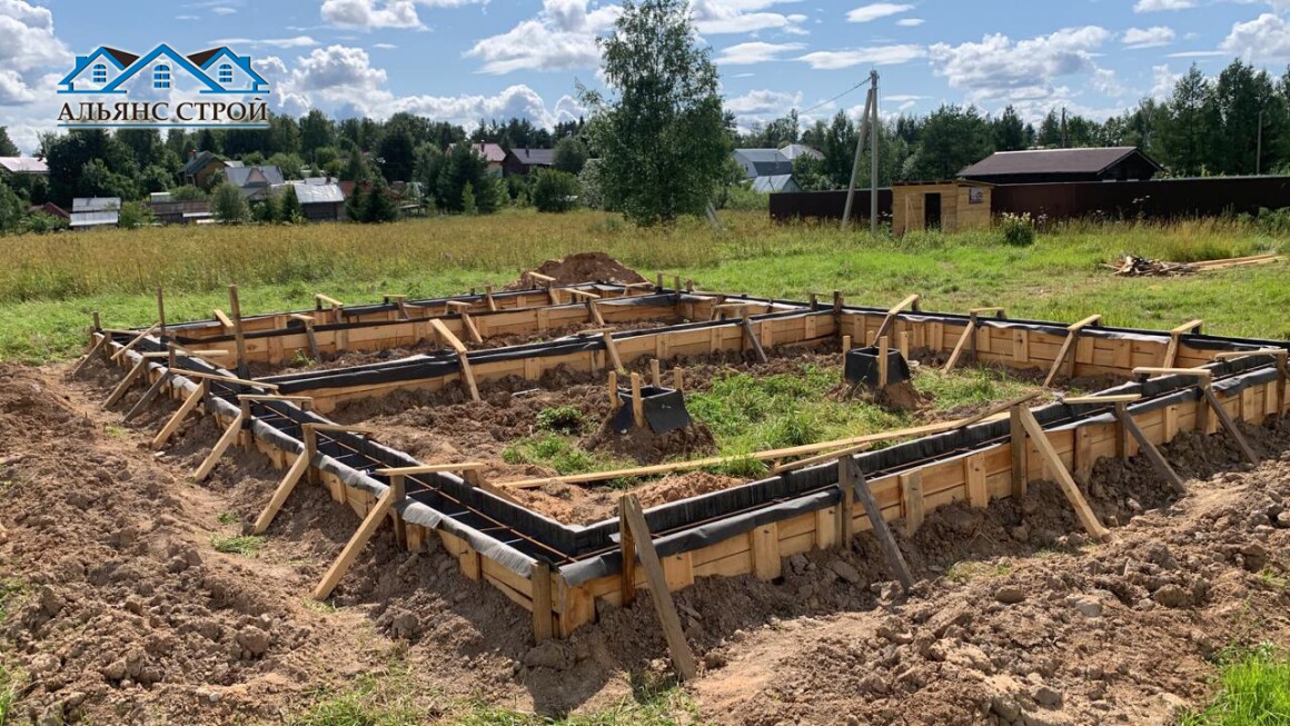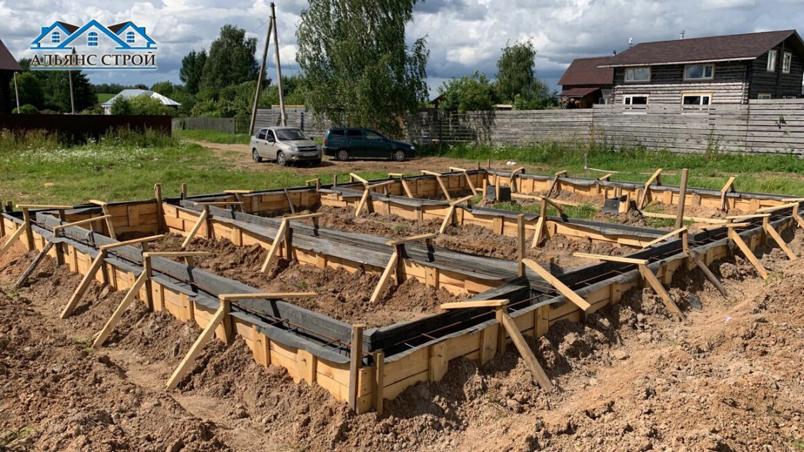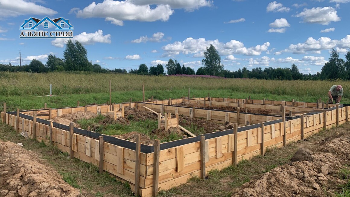 Ленточный фундамент под деревянный дом 7х10 м в с. Покровское, Вологодского р-на.