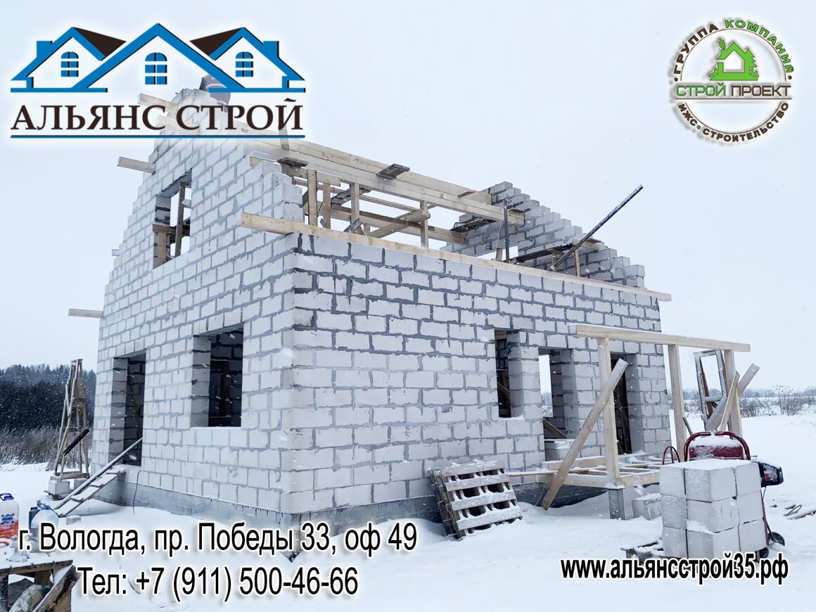 Продолжается строительство дома из газобетона по проекту АС-007 "АВАЛОН" в п. Куркино, Вологодского р-на.
