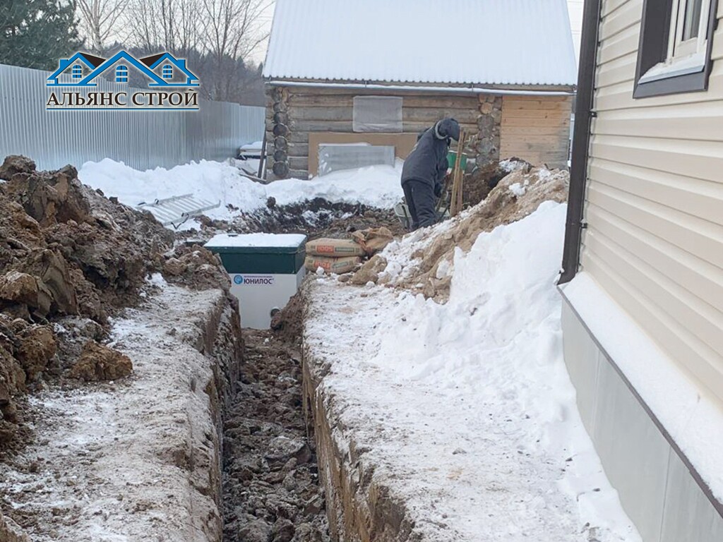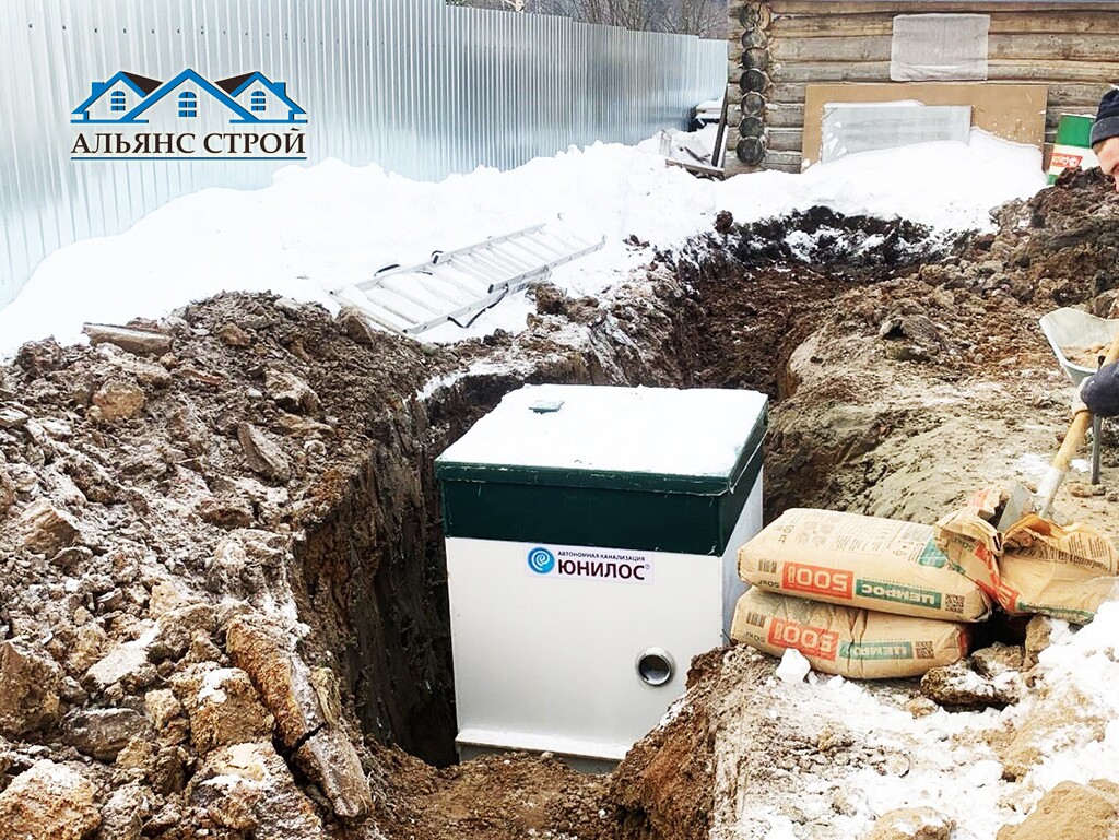 Смонтировали станцию биологической очистки "Юнилокс Астра 5" с принудительным сбросом сточной воды. Работы произвели в п. Можайское, Вологодского р-на.