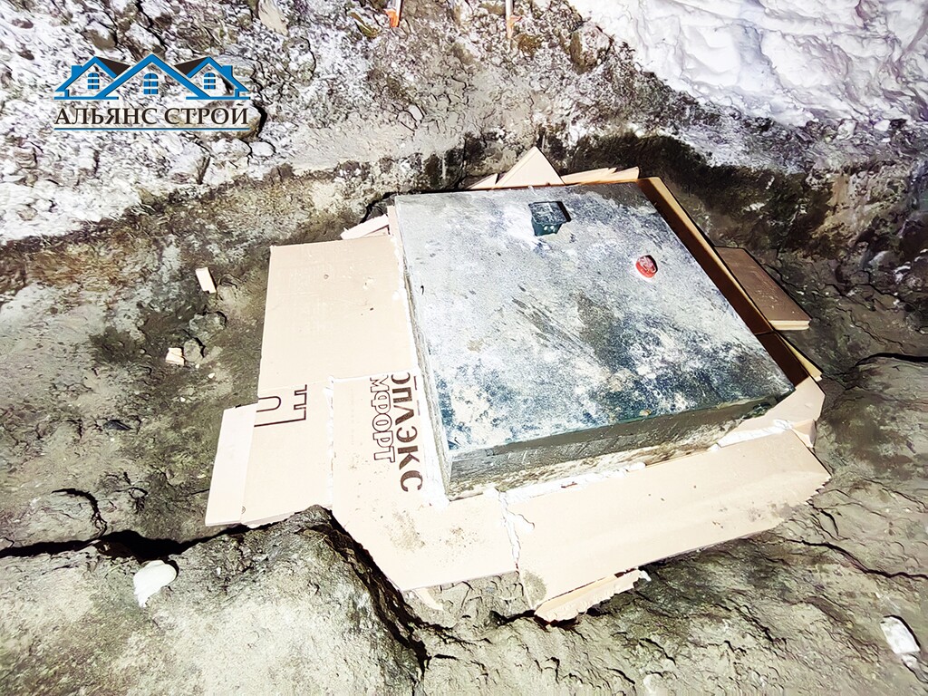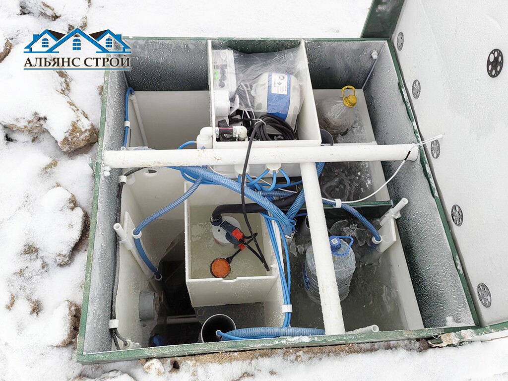 При монтаже станции вырыли котлован, сделали бетонное основание и установили станцию. Залили водой и внешне забетонировали. Сверху уложили теплоизоляцию из пенополистирола и засыпали обратно грунтом.