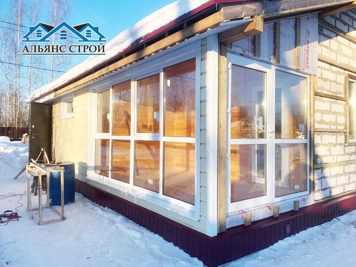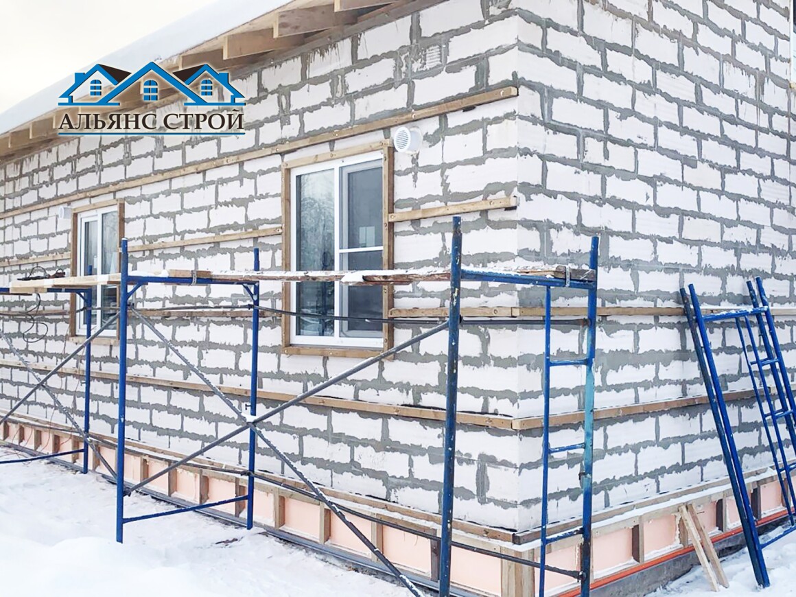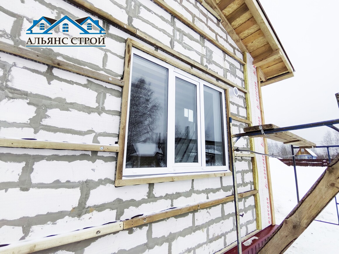 Продолжаются работы по строительству дома 10х12 м из газобетона на старом шоссе, г. Вологда. Приступили к фасадным работам.