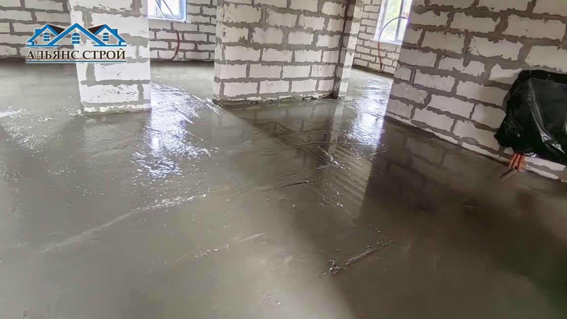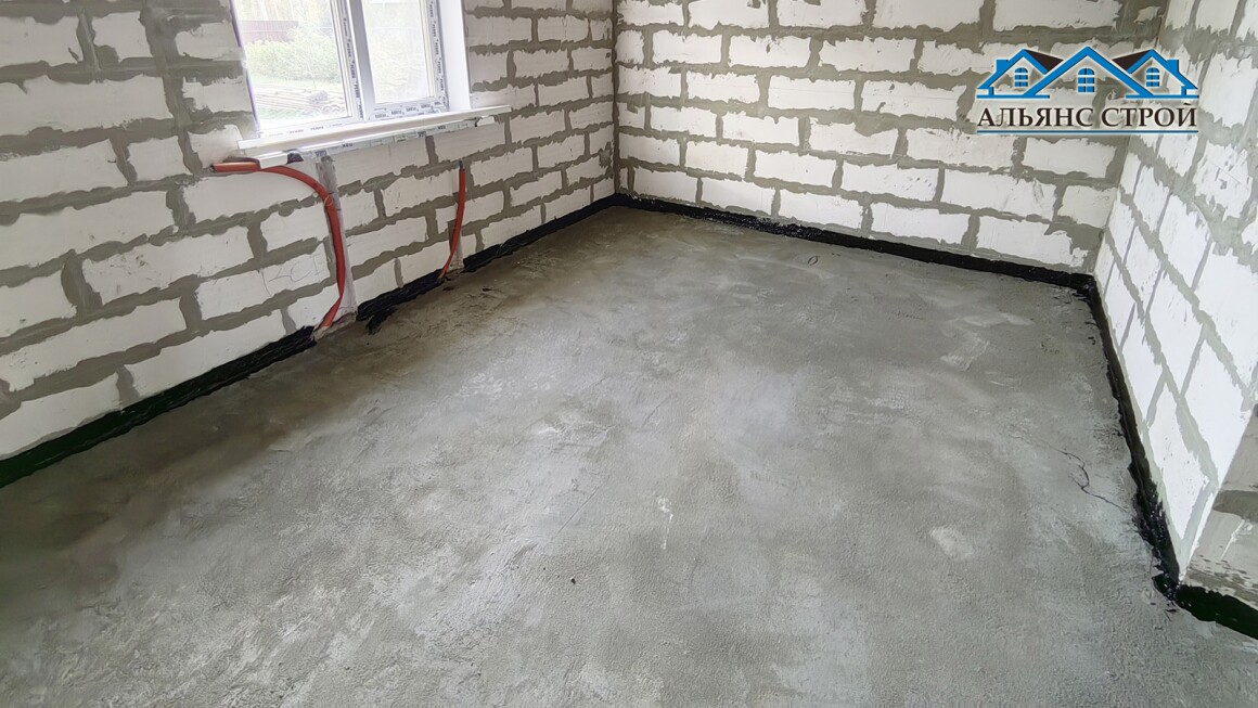 Продолжаются работы по строительству дома из газобетона. Произвели работы по устройству бетонной стяжки с разводкой теплых полов в доме. Разровняли завезенный еще в начале работ песок в доме. Пролили и протрамбовали, во избежание дальнейшей просадки.