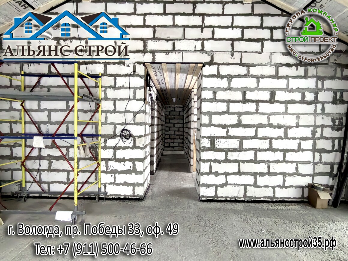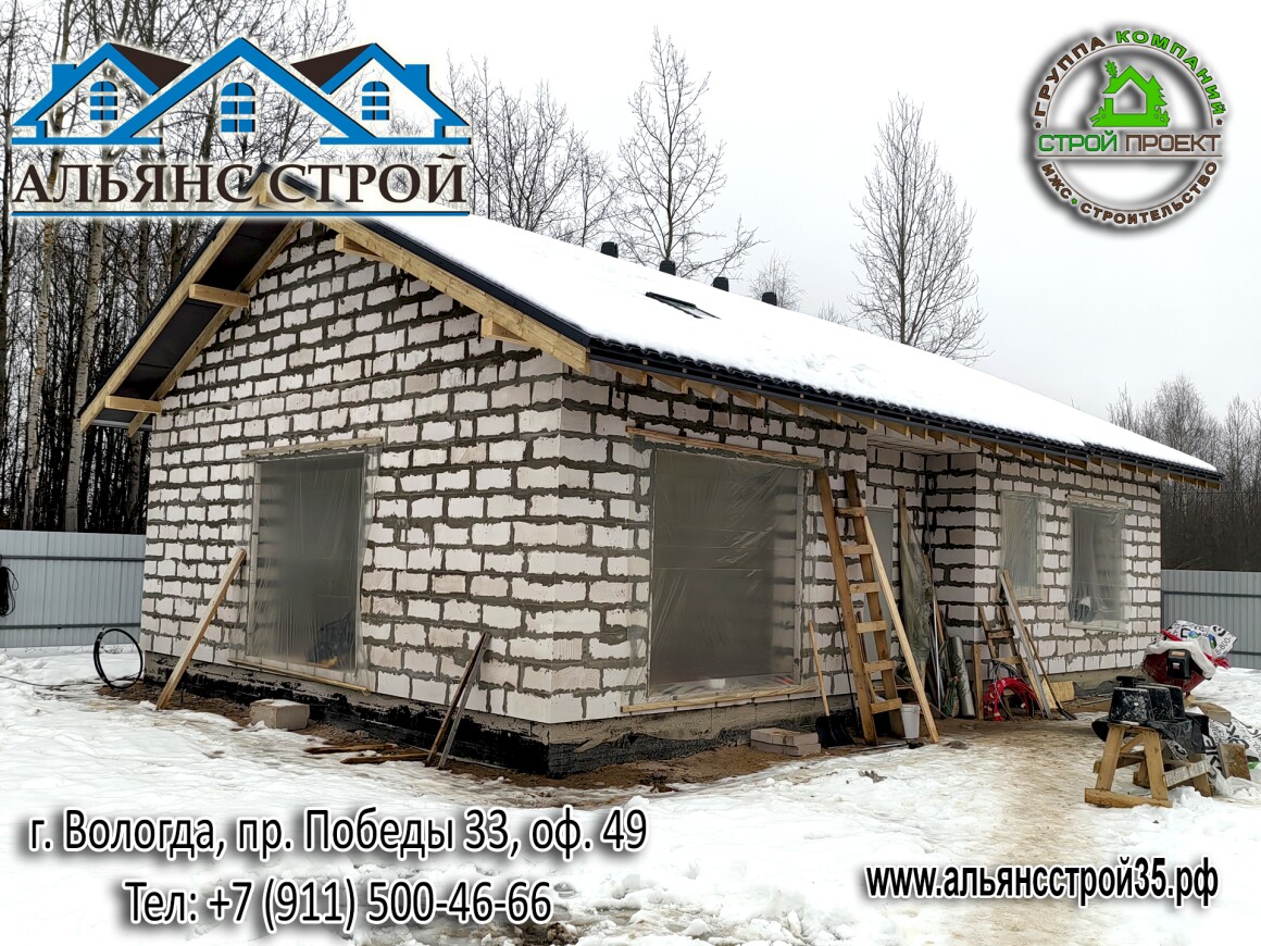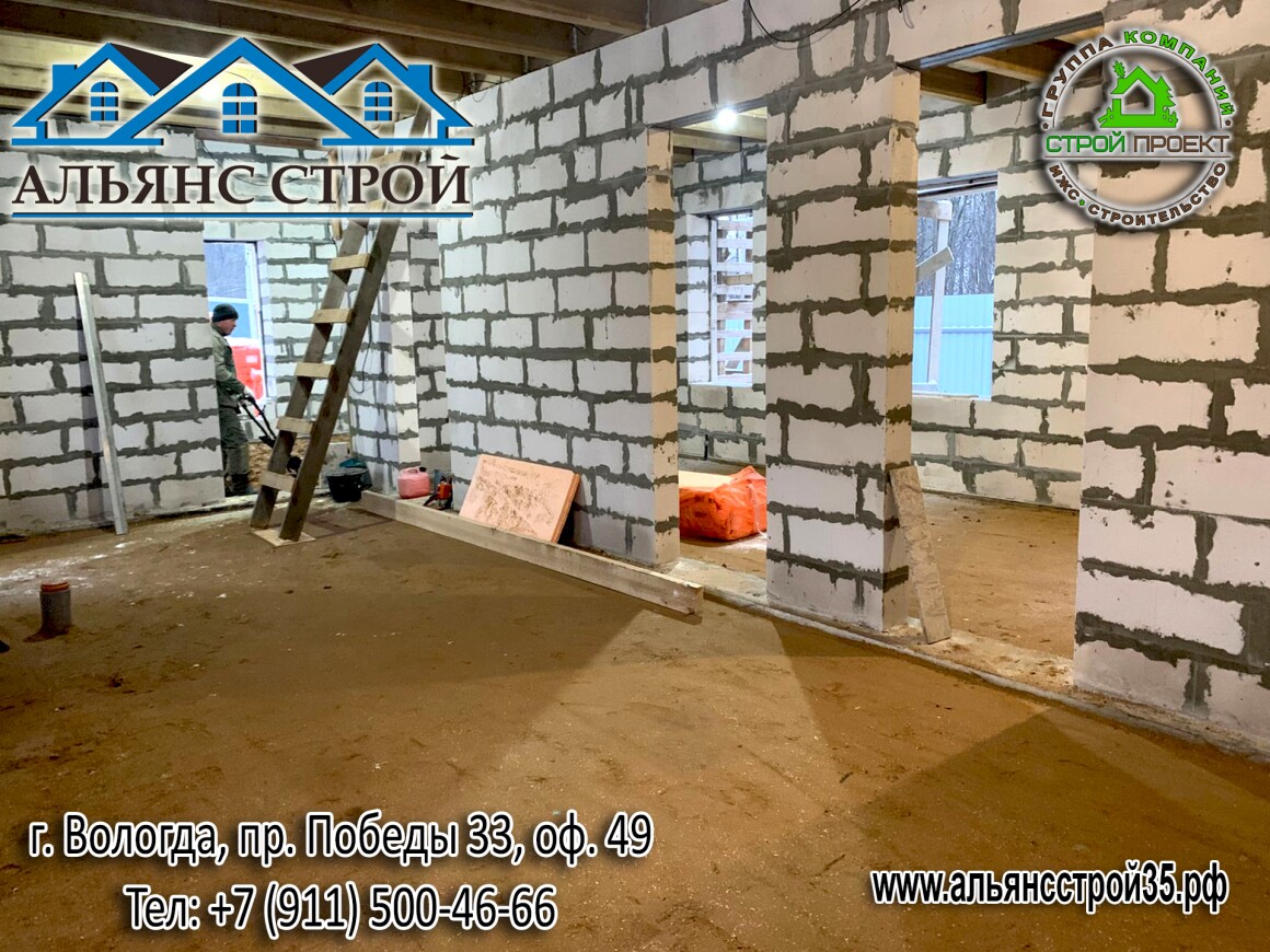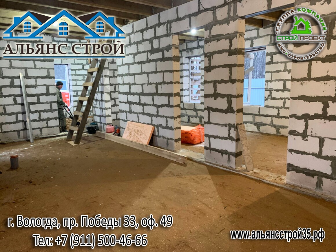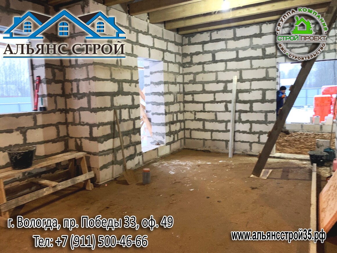 Продолжаются работы по строительству дома из газобетона в г. Вологда, р-н Куралит.