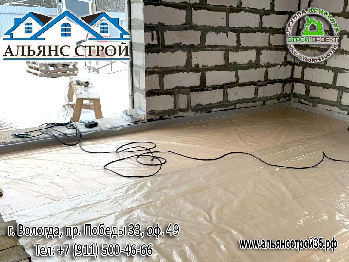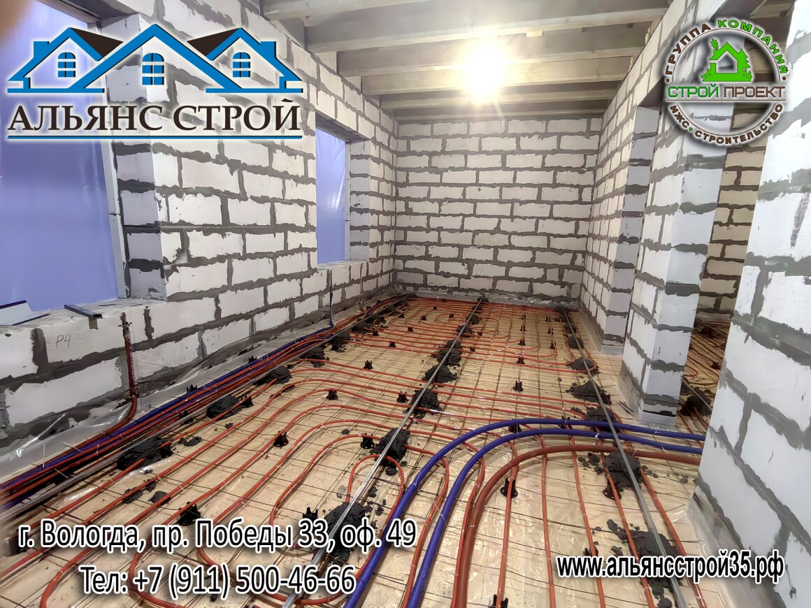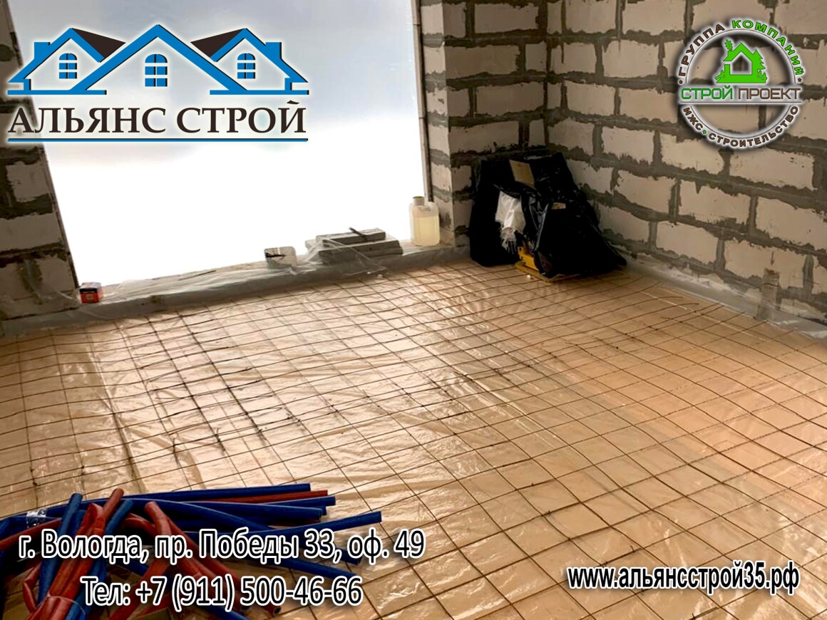 Устройство теплого пола. Продолжаются работы по строительству дома из газобетона в г. Вологда, р-н Куралит.