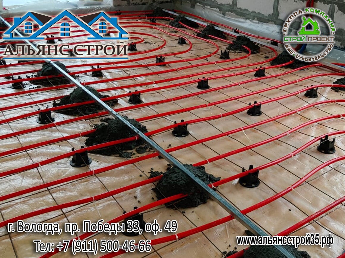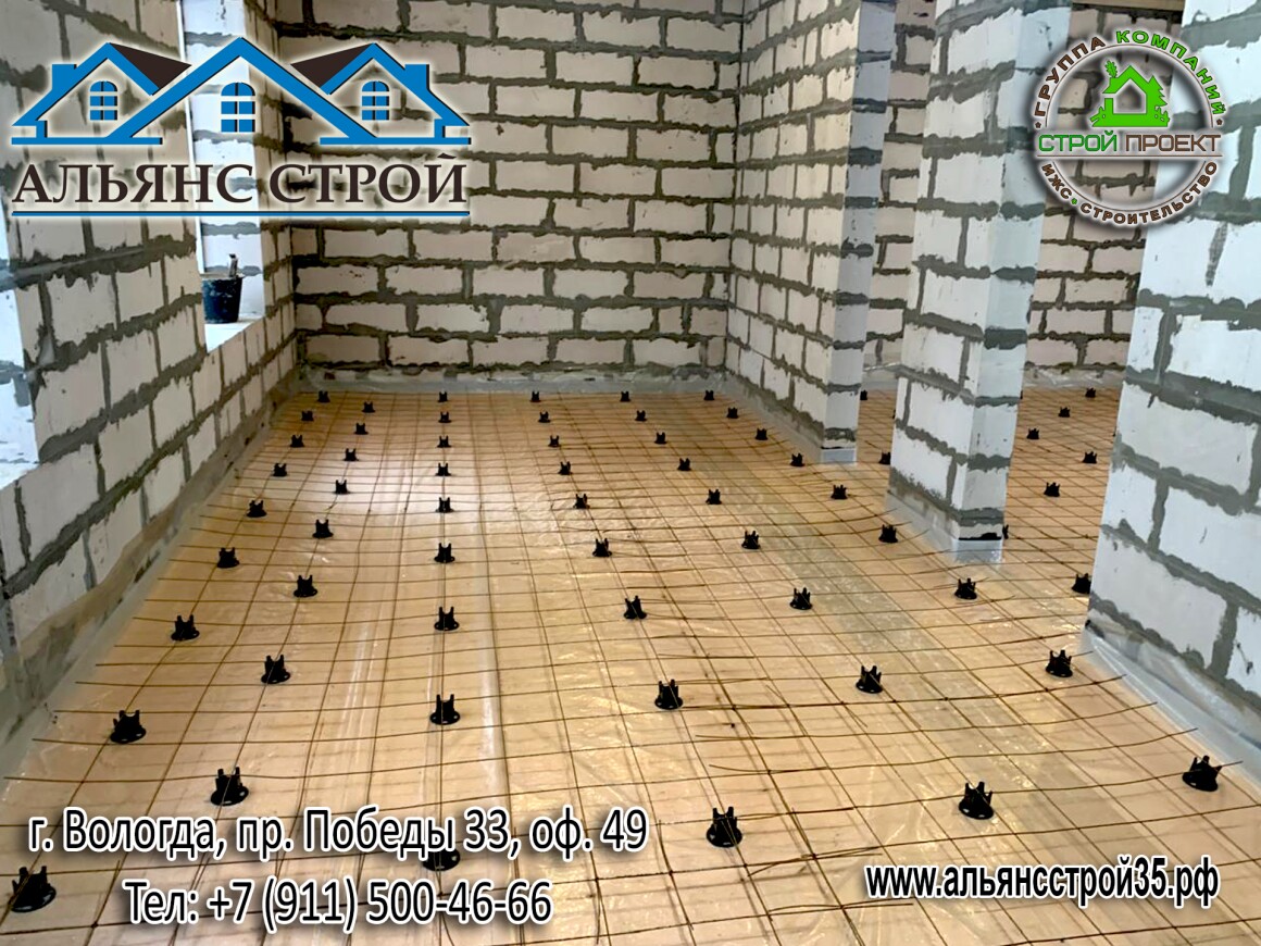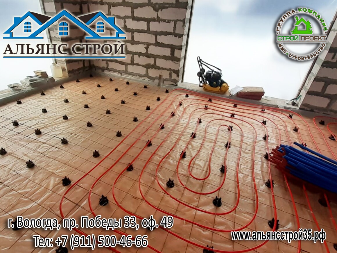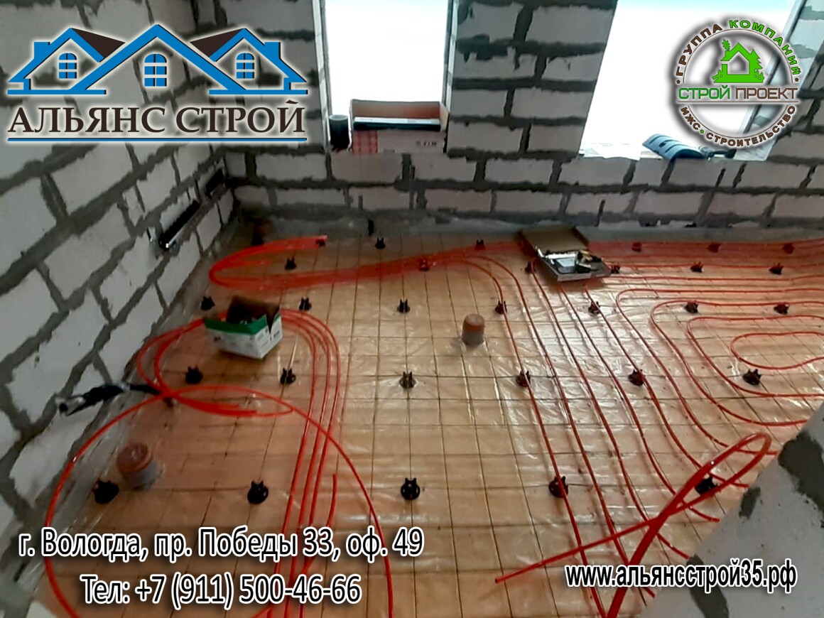 Устройство теплого пола. Продолжаются работы по строительству дома из газобетона в г. Вологда, р-н Куралит.