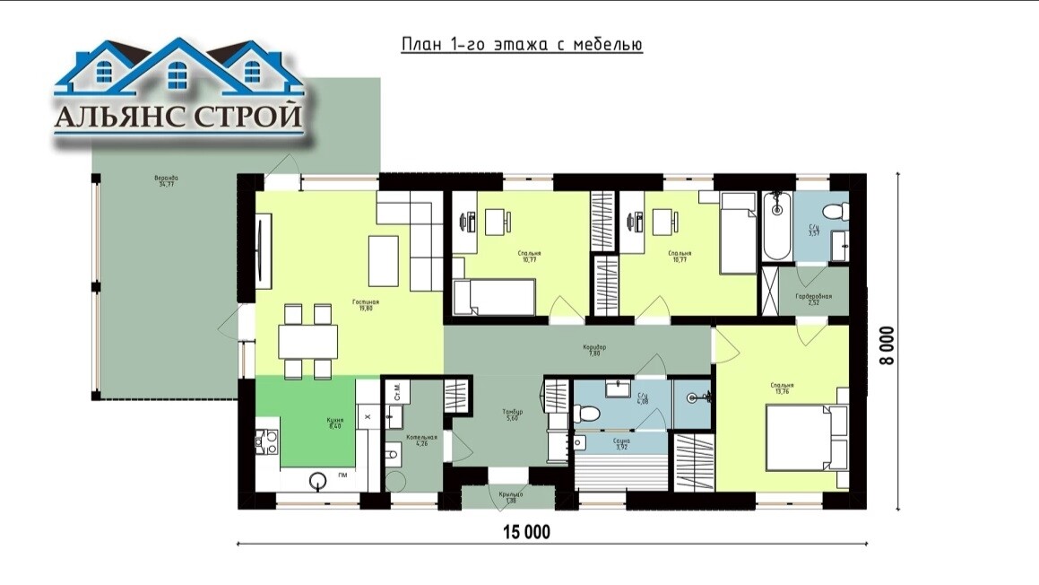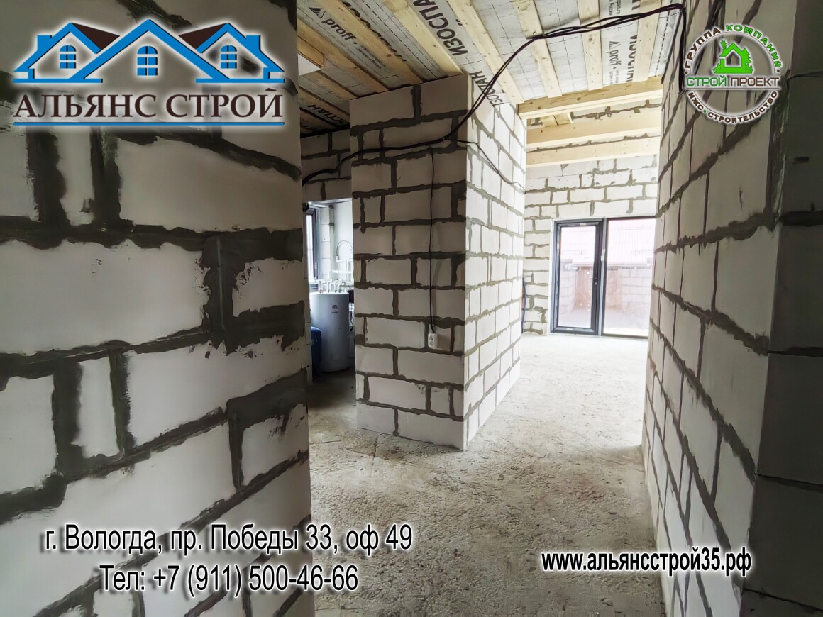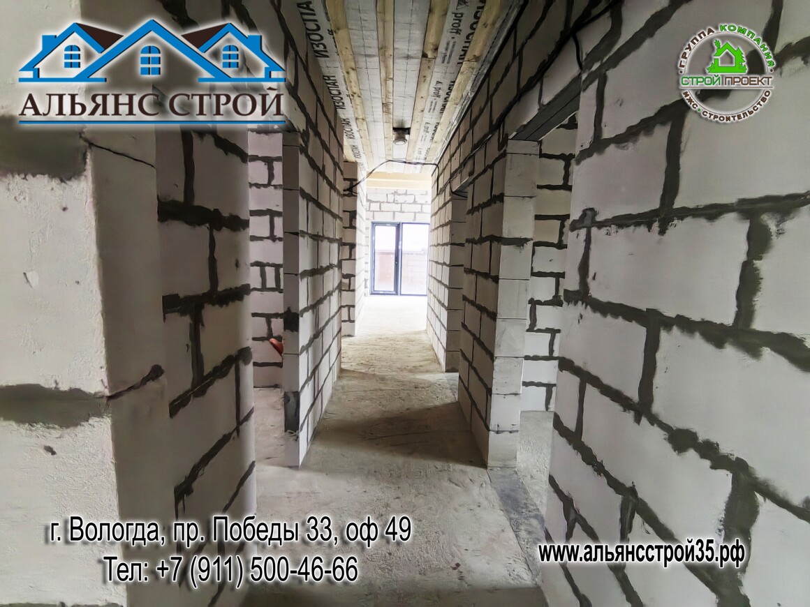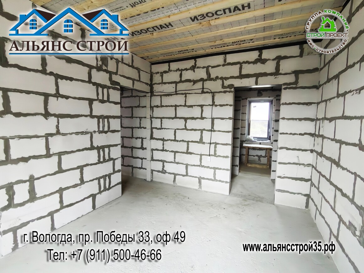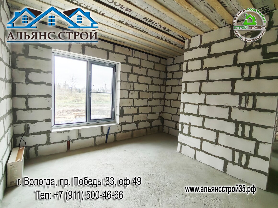Завершились работы по строительству одноэтажного дома из газобетона 8х15 м, общей площадью 136 м2 (жилая 98 м2) в п. Семенково, г. Вологды.