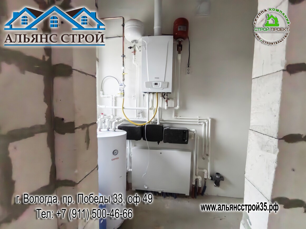 * Водоподведение - "под ключ". Насос скважинный - 90 м. Подведение под землей ПНД водопроводной трубы в дом. Бойлер косвенного нагрева GEFFEN (напольный) на 150 л. Внутреннее система водонакопителя на 60 л, автоматика и разводка Х и Г воды ко всем точкам водопотребления с устройство рециркуляции Г воды через 2 полотенцесушителя.