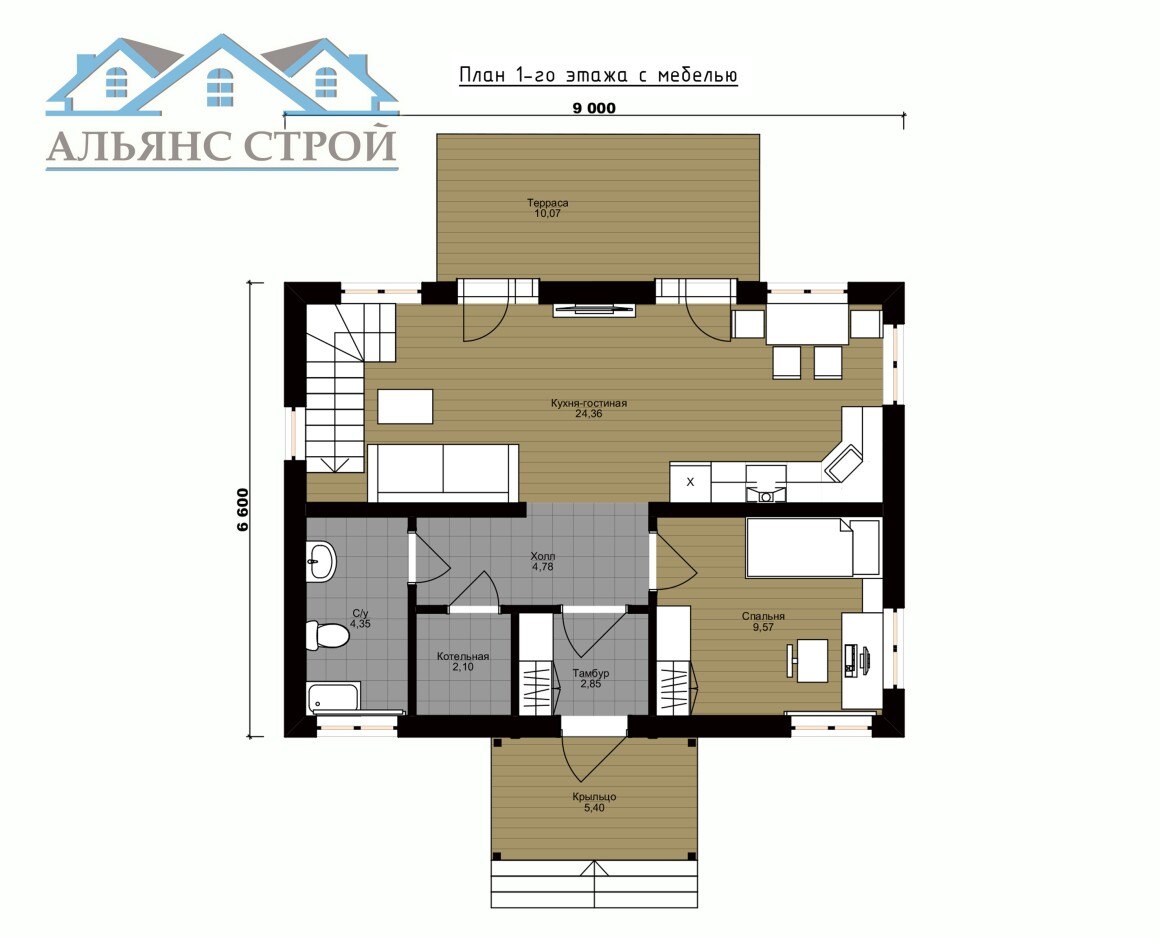 Проект дома АС-003 "ЖЕМЧУЖИНА" (9х6,6) 107 м2 (102 м2)