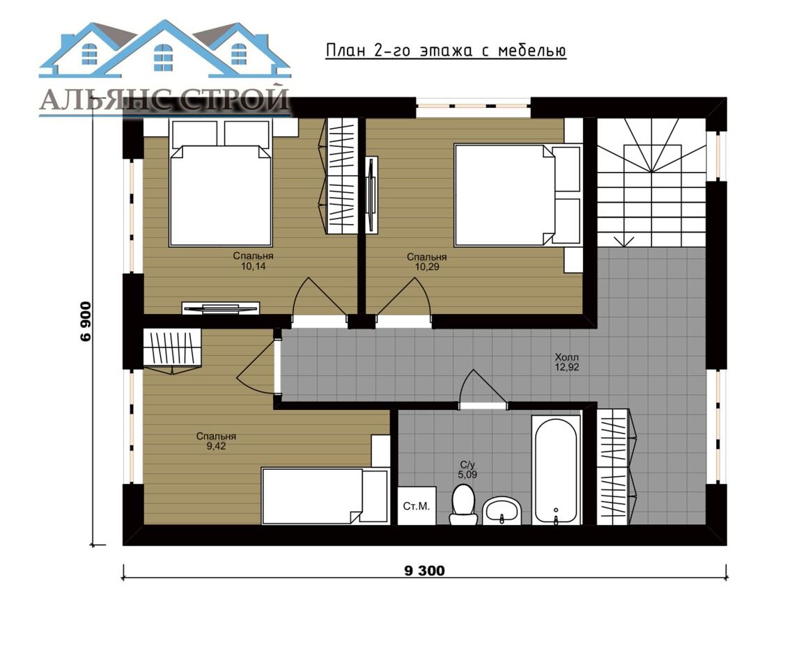 Проект дома АС-004 "ТАХО" (9,3х6,9) 105 м2 (103 м2)