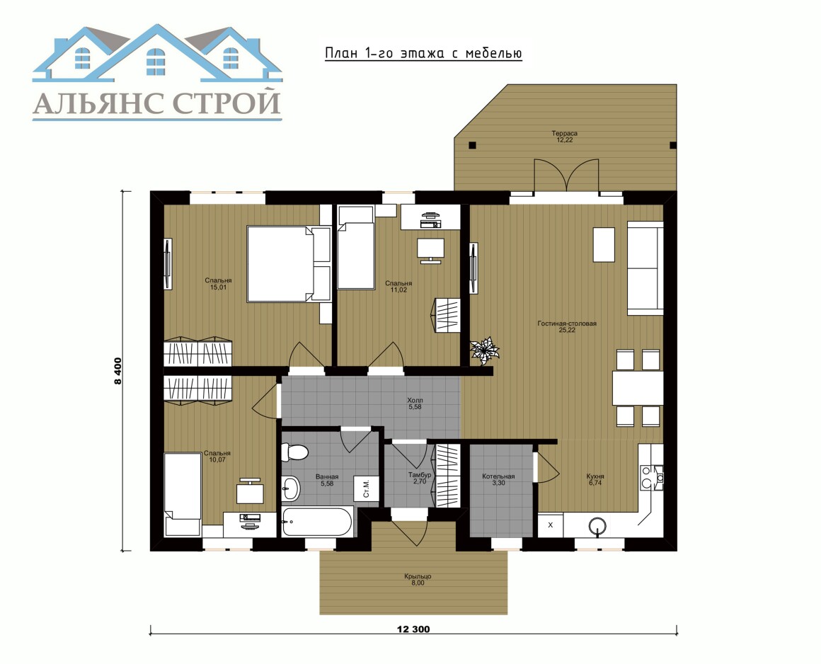 Проект дома АС-010 "АЛТАЙ" (8,4х12,3) 105 м2 (95 м2)
