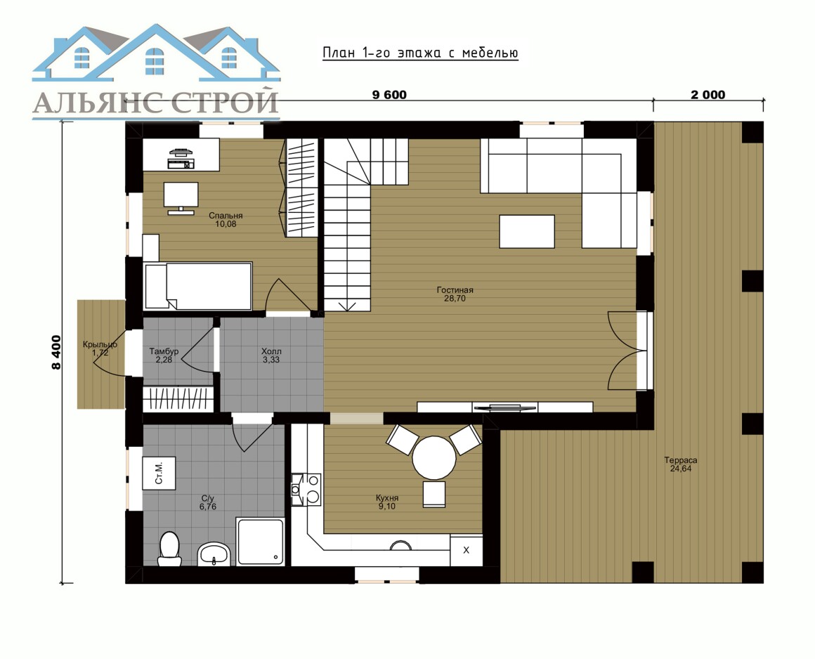 Проект дома АС-013 "ИДИЛЛИЯ" (8,4х11,6) 166 м2 (146 м2)