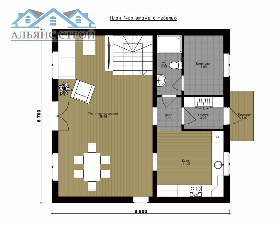 Проект дома АС-016 "МАДЖЕСТИК" (8,7х8,9) 133 м2 (129 м2)