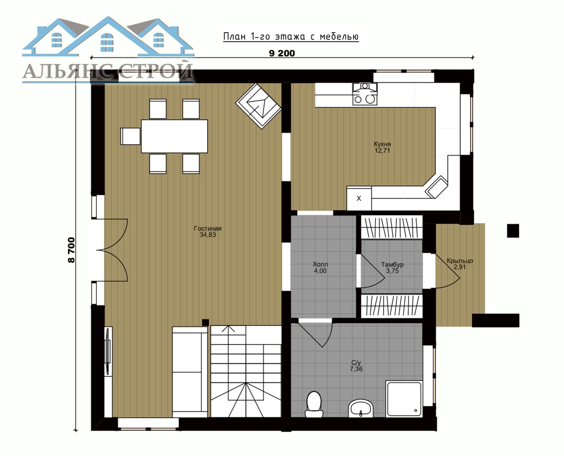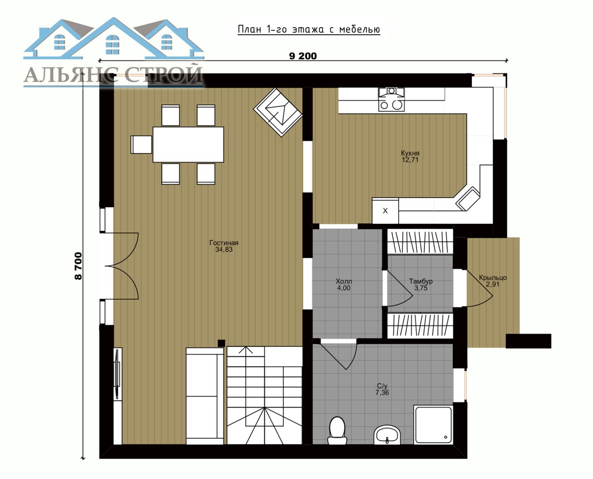 Проект дома АС-017 "ГАРМОНИЯ" (8,7х9,2) 123 м2 (121 м2)