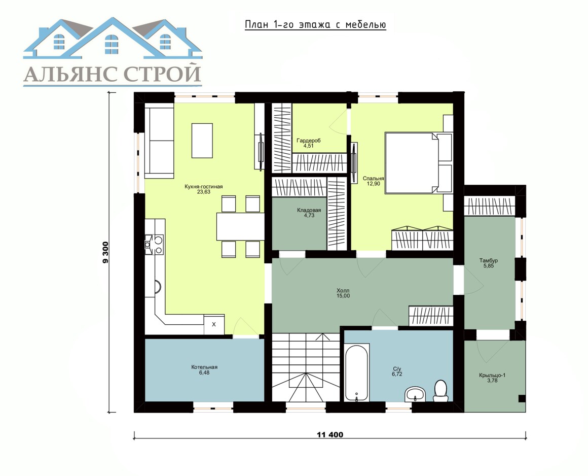 Проект дома "Диана" (9,3х11,4) 153 м2
