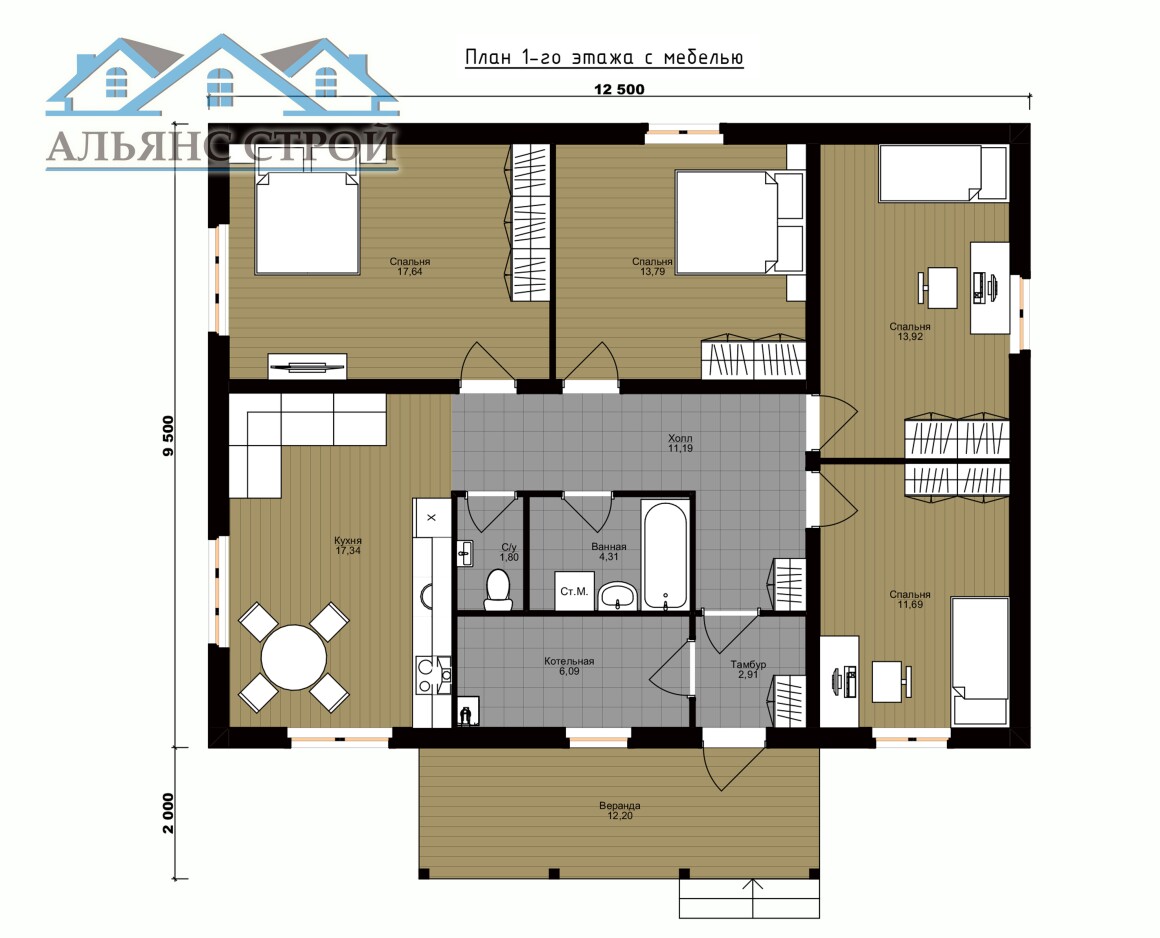 Проект дома АС-028 "Агат" (9,5х12,5) 109 м2