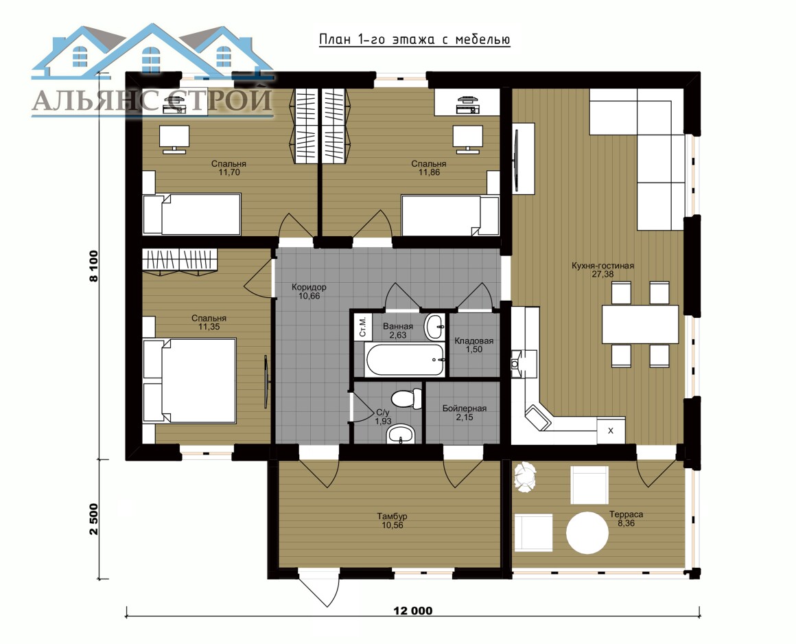 Площадь 1 этажа 101 м2