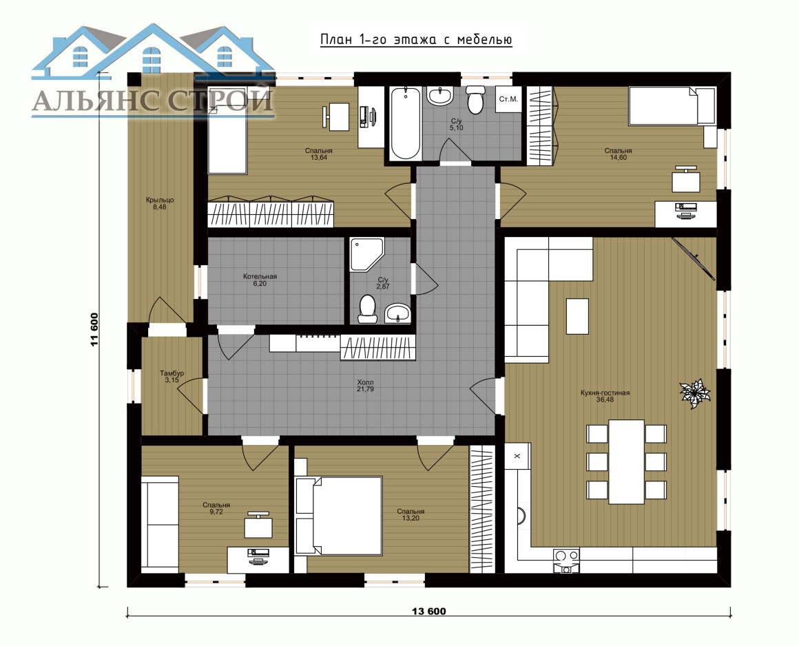 Проект дома АС-030 "Сардиния" (13,6х11,6) 135 м2