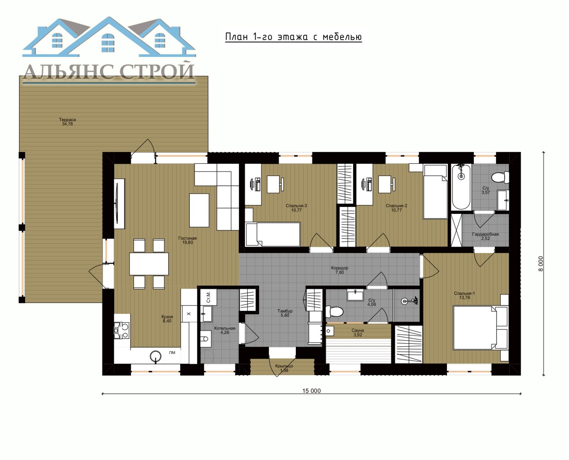 Проект дома АС-031 "ШОКОЛАД" (15х8) 130 м2 (112 м2)