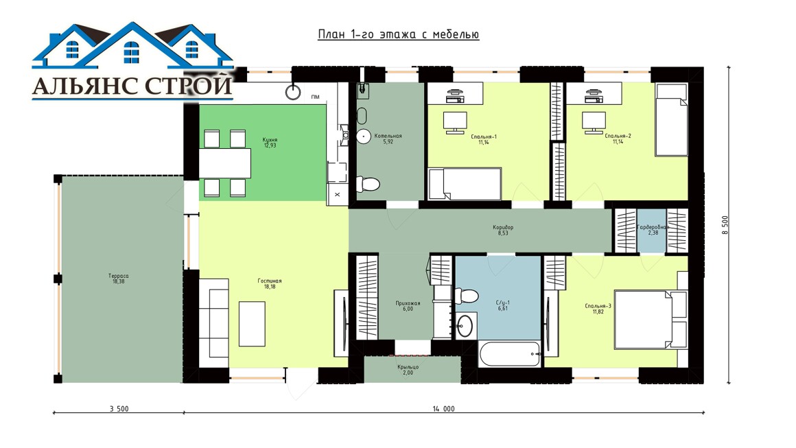 ОБЩАЯ ПЛОЩАДЬ 114 м2