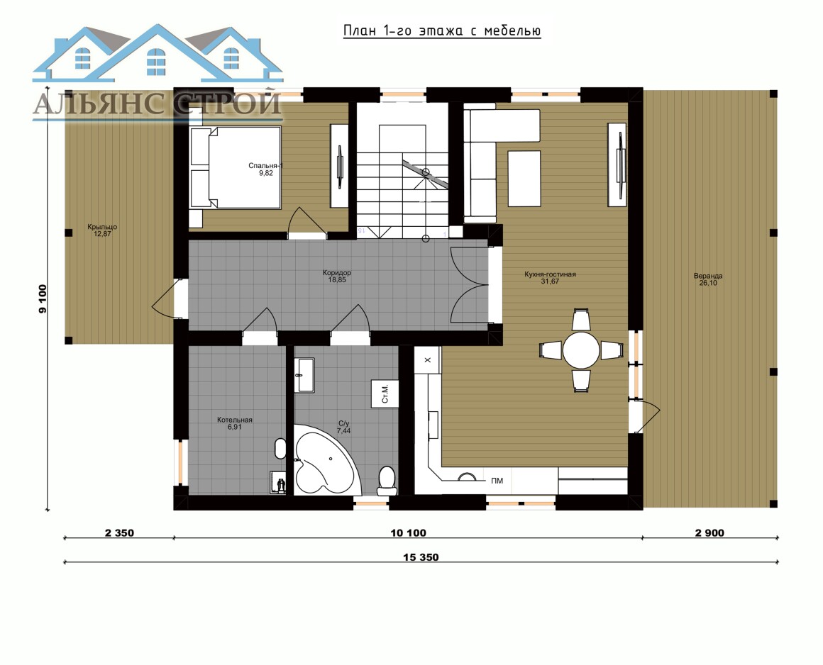Проект дома АС-036 "САНДЭЙ" (9х15) 181 м2 (162 м2)